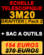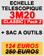 - Le PACK 2 comprend l’échelle télescopique 3m 20 et son sac à outils