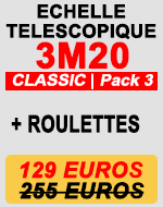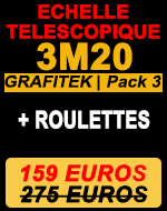 - Le PACK 3 comprend l’échelle télescopique 3m 20 avec ses roulettes