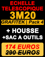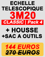 - Le PACK 4 comprend l’échelle télescopique 3m 20 avec sa housse et sac à outils