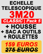 - Le PACK 5 comprend l’échelle télescopique 3m 20 avec sa housse, sac à outils et roulettes