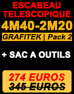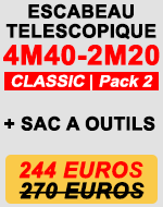 - Le PACK 2 comprend l’escabeau-échelle télescopique 4m40/2m20 et son sac à outils