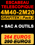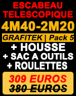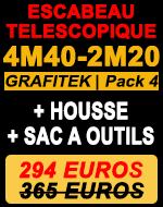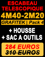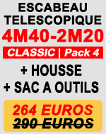 - Le PACK 4 comprend l’escabeau-échelle télescopique 4m40/2m20 avec housse et sac à outils