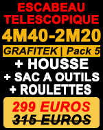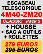- Le PACK 5 comprend l'escabeau-échelle télescopique 4m40/2m20 avec sa housse, sac à outils et roulettes